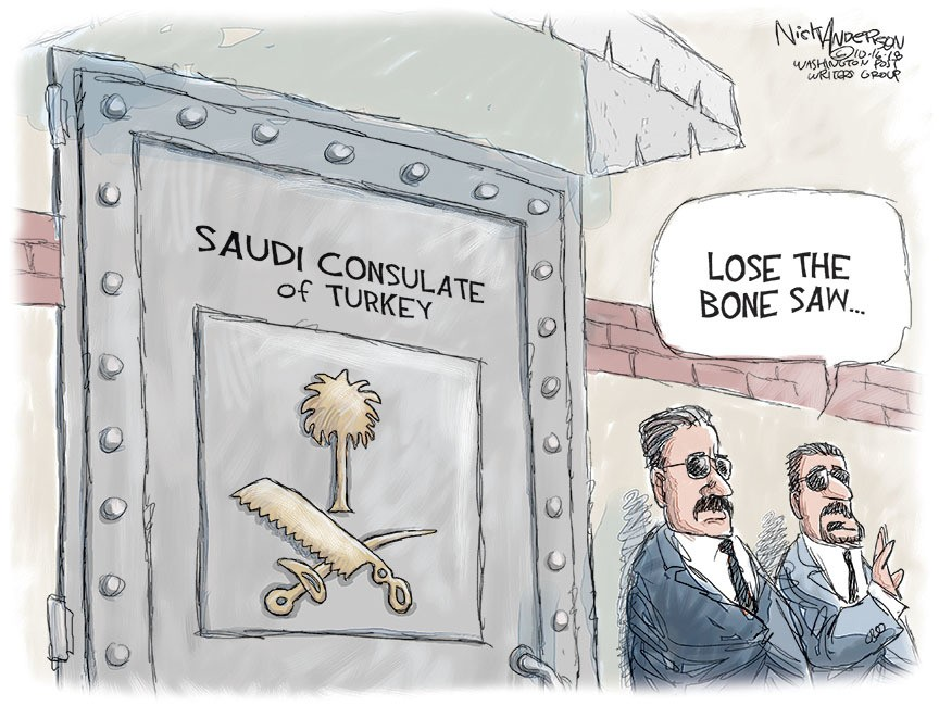 From what I have seen, the Saudis are going to say that Kashoggi was killed accidentally during questioning. Letās be clear about this: He dies during torture. They would not have disposed of his remains had he had a heart attack or choked on a bagel while under what we would consider interrogation. (Yes, I know, they donāt have bagels in Istanbul.)