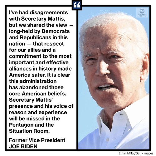 I would hope we could realize that Mattis has at every stage tried to do the right thing, as Trump tried to do the wrong thing to help out Putin. I think Joe Biden summarized it well: