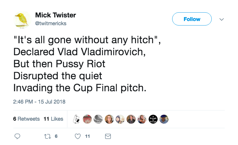 I had a feeling it was something like that, and though I didn’t guess Pussy Riot I probably should have.