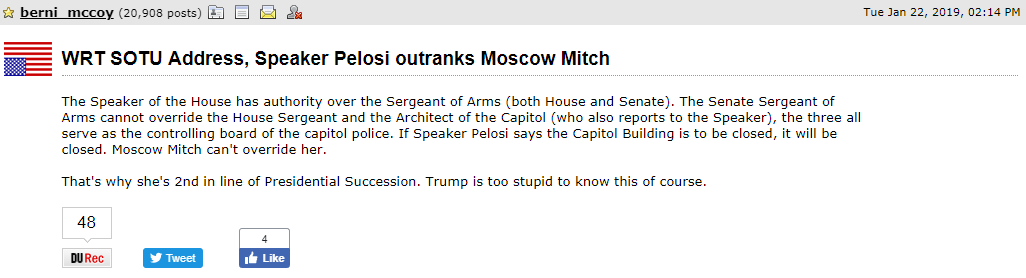 Despite the satisfaction snubbing Trump would provide I can see several influential Dems counseling Pelosi there is risk in refusing him the traditional trappings of a SOTU. Hard to say which way this will play out.