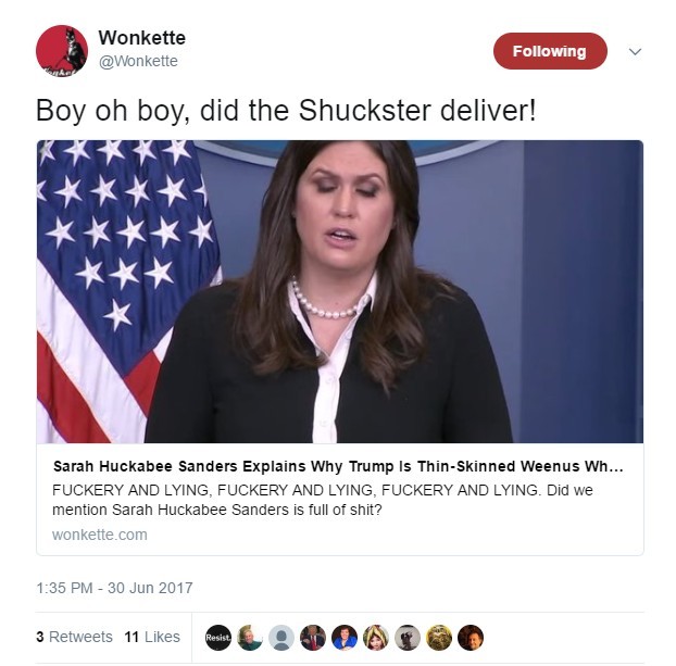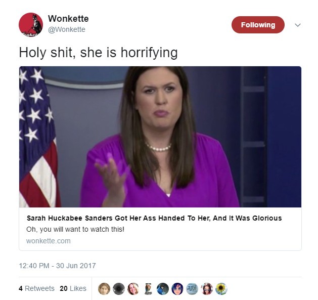 Sarah Huckabee Sanders is the only spokesperson in the world who could make Sean Spicer look relatively more honest and intelligent.