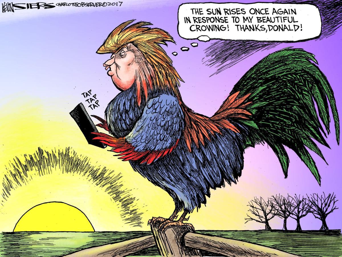 Except that Herr Trump is like the rooster taking credit for the Sunrise⌠and every time that chicken shit comes out of his butt he blames someone else.