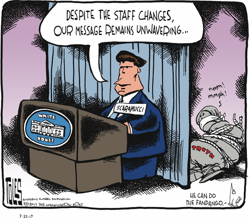 They don’t discriminate in terms of who they offend. I give the Mooch two months tops.
