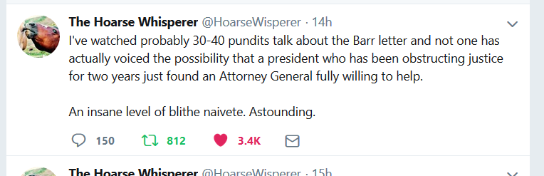 We all know that Barr is feverishly having underlings work around the clock on redacting whatever content of the Report that contradicts his four page “summary.”