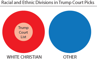 Nice diagram. You could put a very small circle representing âvery good femalesâ inside the large red circle, intersecting by a very small sliver with the pink âTrumps Court List.â