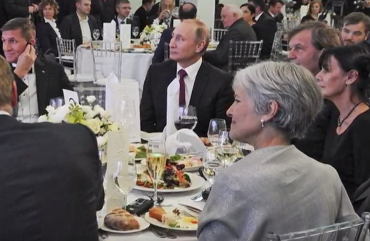 In particular, Russian environmental activists Yevgeniya Chirikova and Nadezda Kutepova criticized Stein for her recent trip last winter to Moscow to celebrate the 10th anniversary of the Russian state propaganda organ. The event included a dinner at which Stein sat at the same dinner table as Putin.