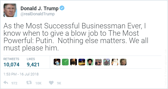Hilarity will surely ensue when Trump gets back. He doesnât read much, but he does watch television, and heâs going to see all the negative coverage about this entire trip. Nato, Britain, Putin, all portrayed as an unmitigated disaster. Save for Fox. But despite claims otherwise he consumes CNN, MSNBC and the major networks. Heâs eventually going to blow like Krakatoa.