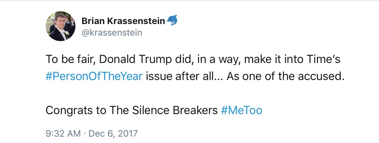 I’m going with, they mentioned Trounce as the runner-up just to keep him included in the sexual harassment conversation. A vague jab and a way to allude to the fact that he is one the prime reasons why these women are now persons of the year albeit for such a sad reckoning.