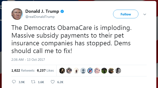 The result of this action by Trump is a little more serious than just likely raising insurance premiums. Other media sourses are reporting that insurers and state regulators are worried this will destroy the ACA marketplaces.