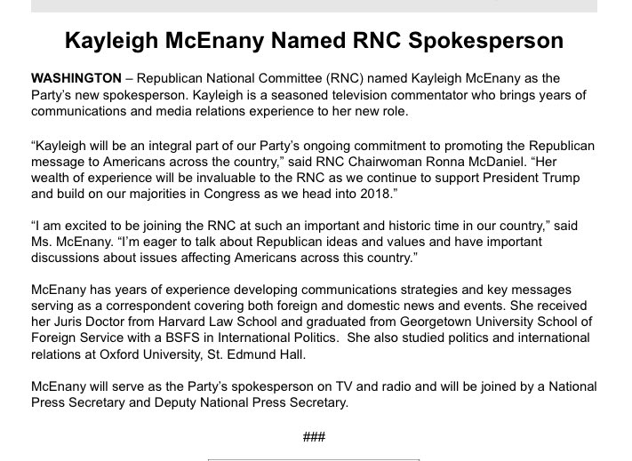 https://en.wikipedia.org/wiki/Kayleigh_McEnany Another one claiming a Harvard Law Degree, as well as studying at Georgetown. She sure looks like a deer in the headlights when other people push back on her bullshit on CNN. (BTW CNN, stop paying people like her and Jeffrey Lord to come on and debase themselves spouting nonesense - it isn’t remotely amusing, nor does it increase ratings). Maybe she got sick of being challenged and whoever is providing the money for Trump TV offered her some significant coin.