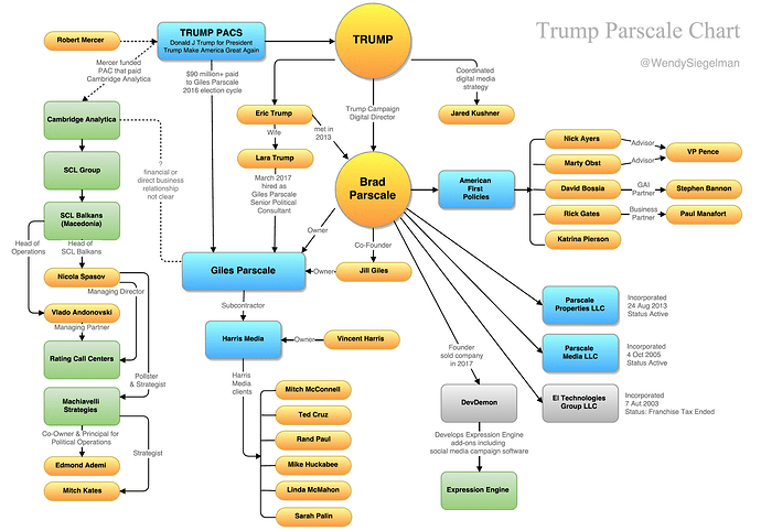 "This is interesting in that I am convinced that Parscale, whose business is/was based in San Antonio (moved his digital operation to Florida recently) was fully engaged with Jared in the connections to Wikileaks, the Russian hacks and the influence over the election. I think Parscale is as dirty as the rest of them. I still wonder who ‘masterminded’ the data link between Trump Tower and the Alfa Bank server. Trump paid Parscale millions and Trump’s knowledge of how the election was moving towards the end in PA and other states came from Parscale.