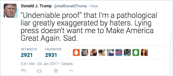 Has any President or President-elect ever defended or supported a foreign country and leader on any controversial issue (even an ally or friendly leader) like Trump has Russia and Putin? Letās see - Iām about to be President of the United States. Who do I believe and put my trust and the welfare of the country on? 17 U.S. intelligence agencies and their computer and cyber-security experts? Or Vladimir Putin and Julian Assange? Gee, I hope all the decisions I need to make arenāt this hard. Gotta go - meeting with Kanye about to start (I remember when the important meetings are scheduled).