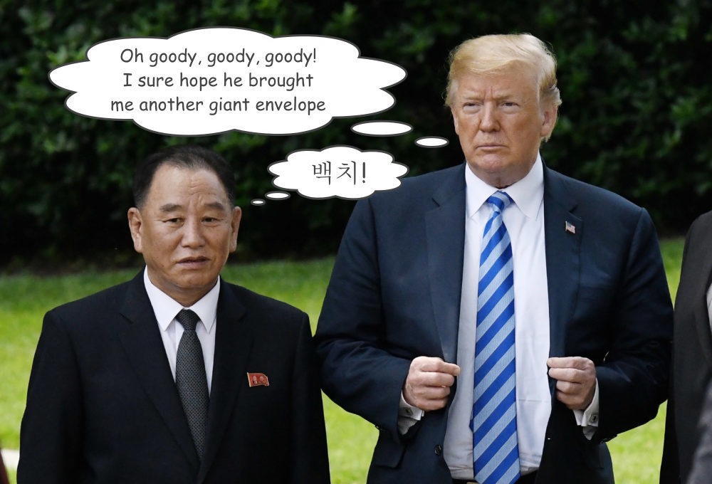Kim Yong Chol has exactly the same look on his face as I would if I had to stand next to Donald Trump.