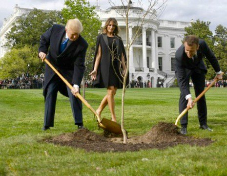The photo of Donald Trump and his French counterpart Emmanuel Macron planting an oak tree in the garden of the White House symbolized the friendship shown by the two leaders.