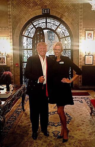 Not only is this woman, Heather Rinkus, an employee at Mar-A-Loco, but its also not clear on who’s dime she’s being paid, what security clearances she has, and she is married to a twice convicted felon who was convicted of a Ponzi scheme and criminal enterprise. That’s who has been allowed to accompany this orange freak on this international trip abroad.
