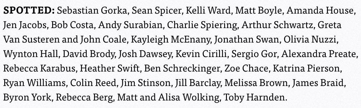 But even more telling was the presence of mainstream journalists â from CNN, the Washington Post, Bloomberg, the New York Times, Politico, GQ, Axios, The Atlantic, and New York â some of whom were there under the pretense that the party was off the record. Schmoozing with sources or observing up close the debauchery of subjects is sometimes part of the game, of course, but there was a palpable unease in the room â who exactly was using who here? The Breitbart Embassy of yore had been a fringe enclave; but in 2017, itâs a venue for Bannon to showcase his unusual, if overstated, political power.