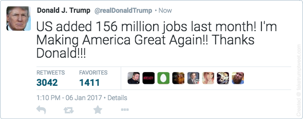 Trump: Every single job is because of me. Every job, since Obama took office was created in anticipation of my being next POTUS. 4.7% rate is due to me and me only.