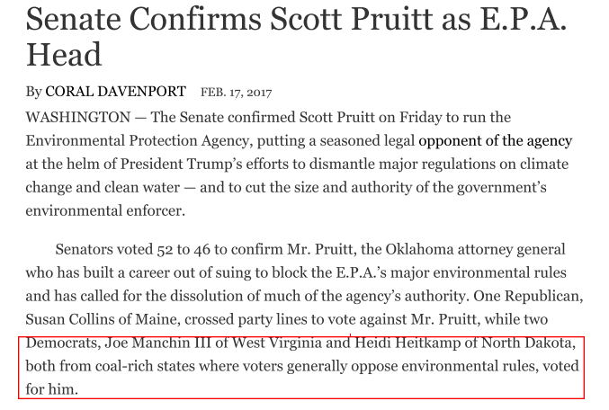 Heitkamp […] said she has often found middle ground with Trump and even agrees with his policy on issues like deregulation and fighting for “working people,” she told the Post.