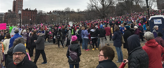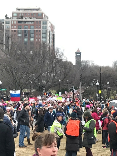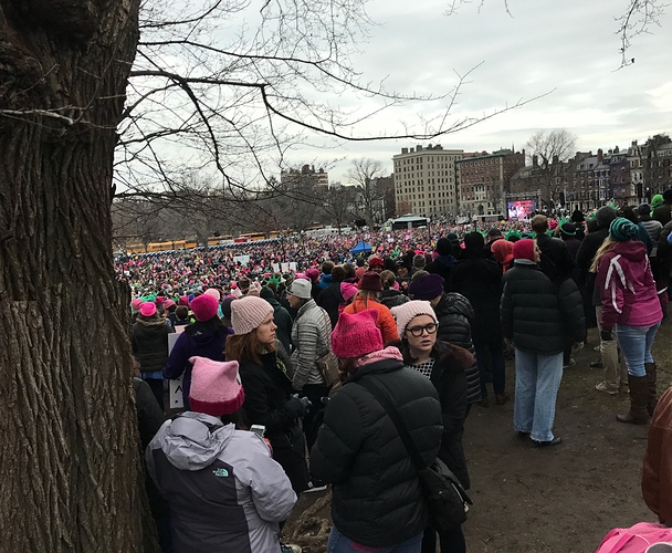 I think that the turnout is much greater than the organizers expected. It was very heartening and inspiring. It was exactly what my spirits needed after yesterday. A couple of men I spoke w/ said they were shocked at how many people turned out and it made them feel good. And not alone. I hope that the organizers will be able to capture contact info for the people who were there for future marches, organizing. Because this was a united group, and if we can work together, we can get through the next 4 years and try to minimize the damage to our country and each other.
