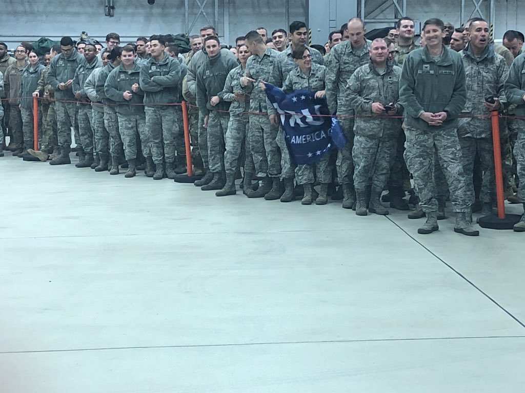The real concern is the rule breaking, that kind of thing should not have been allowed to happen, the officers should have shut it down immediately (actually, they should have given the lecture beforehand). Our troops are supposed to be apolitical while in uniform or on duty…sure, they can be excited to see the president, but holding Trump campaign memorabilia is just wrong under military law. The fact that it was allowed to happen is really worrisome…troops moving their allegiance from the Constitution to the president is how we end up with a military dictatorship. Let’s just hope it was a screw up and the military remembers how it’s supposed to act.