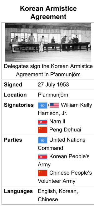 Unless, of course, I slept through the signing of a peace treaty to end the Korean War last week?
