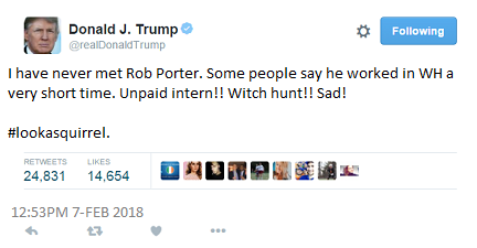 “I know Rob. I’ve known him for years, both as a close friend and as a personal advisor. He is kind and considerate towards all. The country needs more honest, principled people like Rob Porter, which is why I hope that this cynical campaign to discredit his character ultimately fails.”