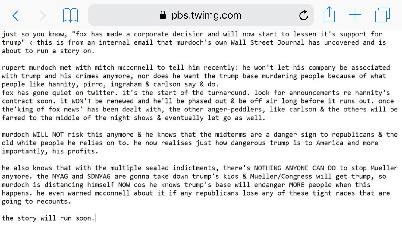That was a fun read and i would really love to believe it, but reminds me of stories I read months or more ago about how the justice department was about to hand down RICO indictments on the entire GOP.