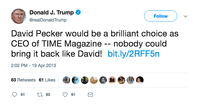 The scope of the disloyalty is positively criminal! Guess Pecker’s also being forced to make up stories about Trump, just to get a deal. Heh.