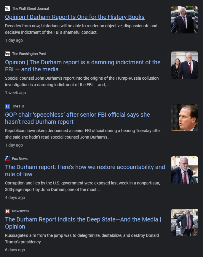 It’s all about appearances. The goal was merely the announcement of an investigation into Hunter Biden by Ukraine. Once they had that announcement, they could run with that and use it against Joe, and would justify doing Putin’s bidding in that country. Same thing here with Durham. The mere presence of this report is enough to vindicate the Dotard, regardless of what it says. Ignorance by the rubes is bliss.