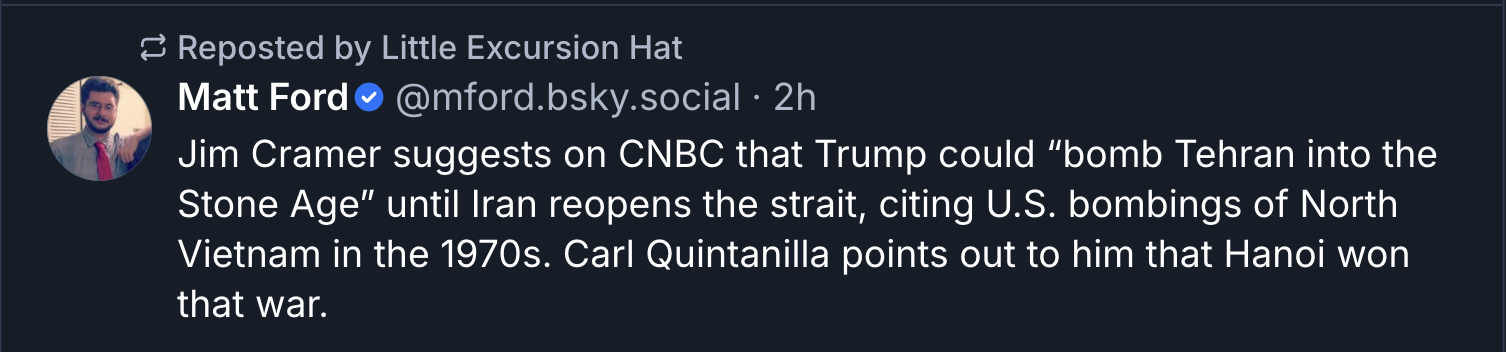 As per the post to Morning Memo yesterday - thank you, but dammit, dinner is ready . . .