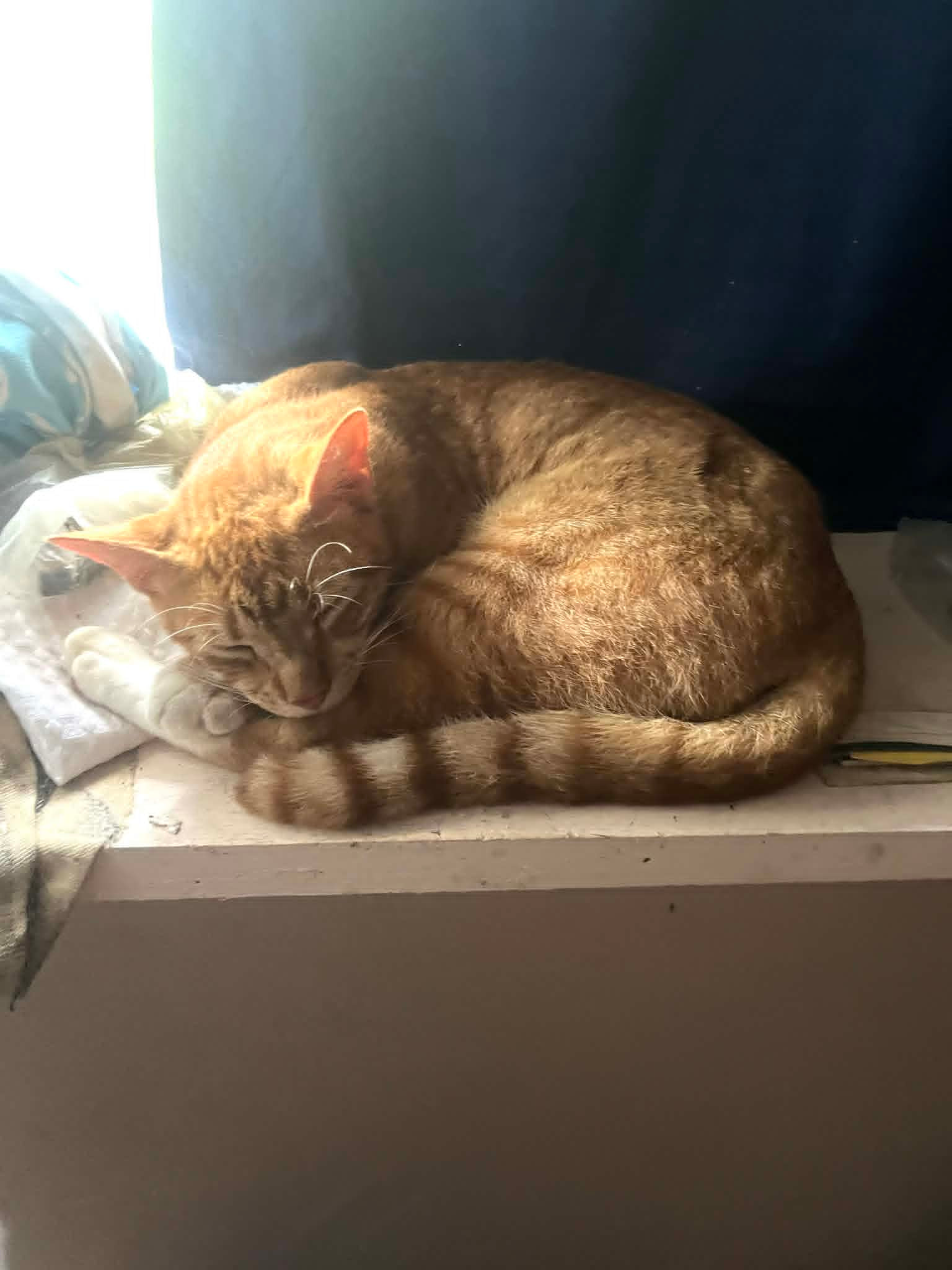 My baby & best friend Valentine…… He was missing for the daybreak feeding this morning, I went all over my property calling his name but no sign of him. Was totally frantic and getting dressed to go looking for him outside the gates when he suddenly appeared on the kitchen table. Now here he is snoozing in his favorite spot by the window. I’m going to take his return as a sign that things can suddenly get a whole lot better, I hope that it’s true for us all…….