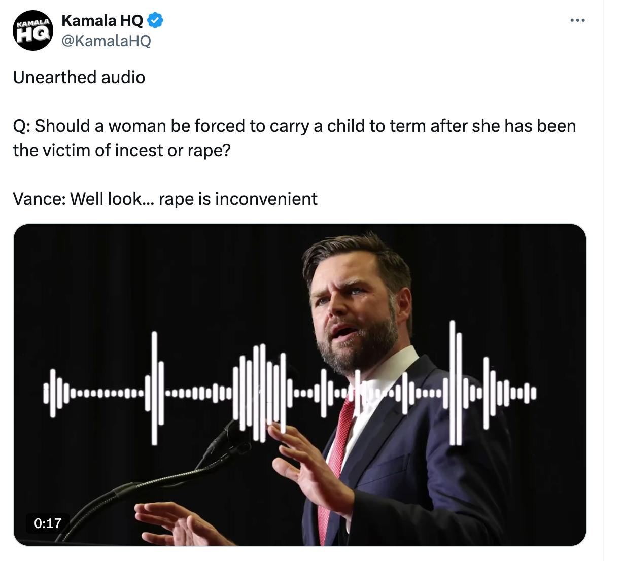 Rape is a crime; a violent, destructive, horrifying crime with life long consequences for its victims. Piss off to hell, JD Vance or will that be inconvenient for you.