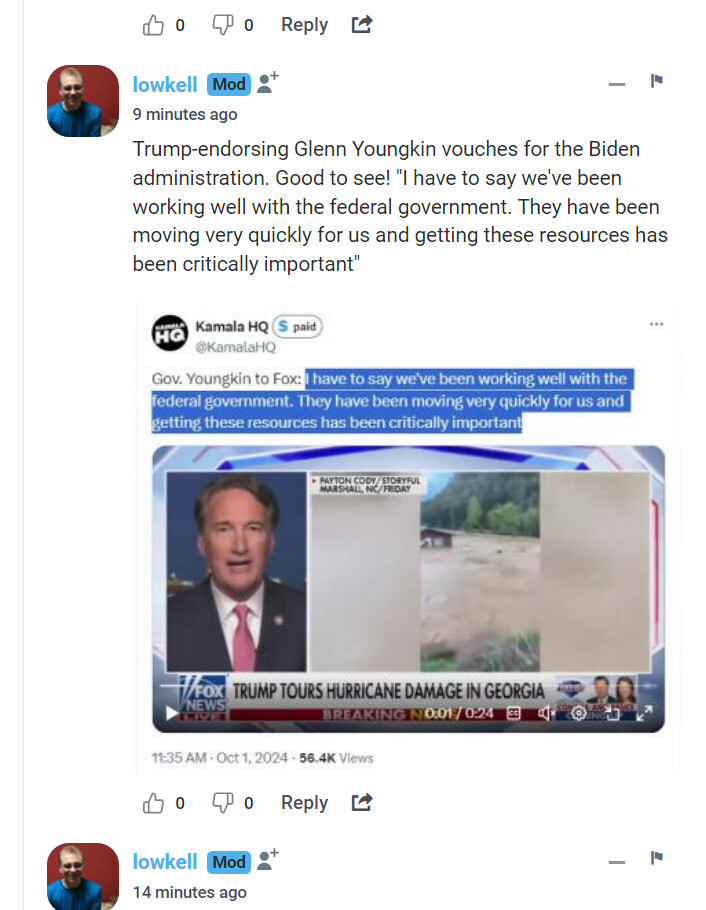 It’s interesting to me that the Republican Governors of Virginia, Georgia, and sort of indirectly, South Carolina have been giving full credit to the Biden administration publicly, even as they know this undermines the Trump campaign’s efforts to paint Democrats as unresponsive and uncaring.