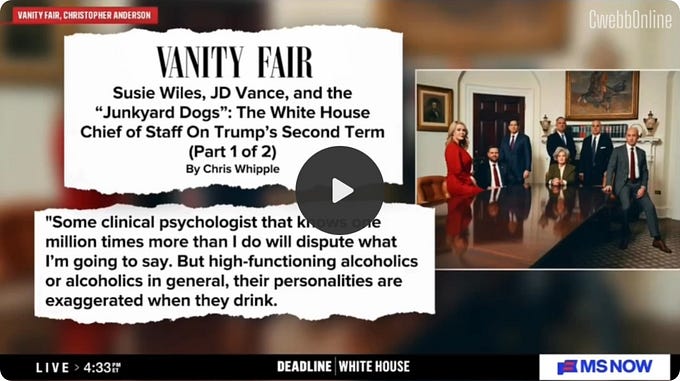 I gather Karoline Leavitt has allegedly revealed the possible content of Trump’s Oval Office address tonight. Apparently it’s going to be a brag-a-thon about how great Trump is, and the economy, and immigration deportations, and how the U.S. is feared and respected anew in the world. Toss in some Biden slagging, stolen election bullshit, maybe even a whine about Tina Peters. So, an hour of unearned hubris, delusions and delirium. If he wasn’t so repellent to listen to I’d have a go at it, for no other reason than the comedy. But…nah.