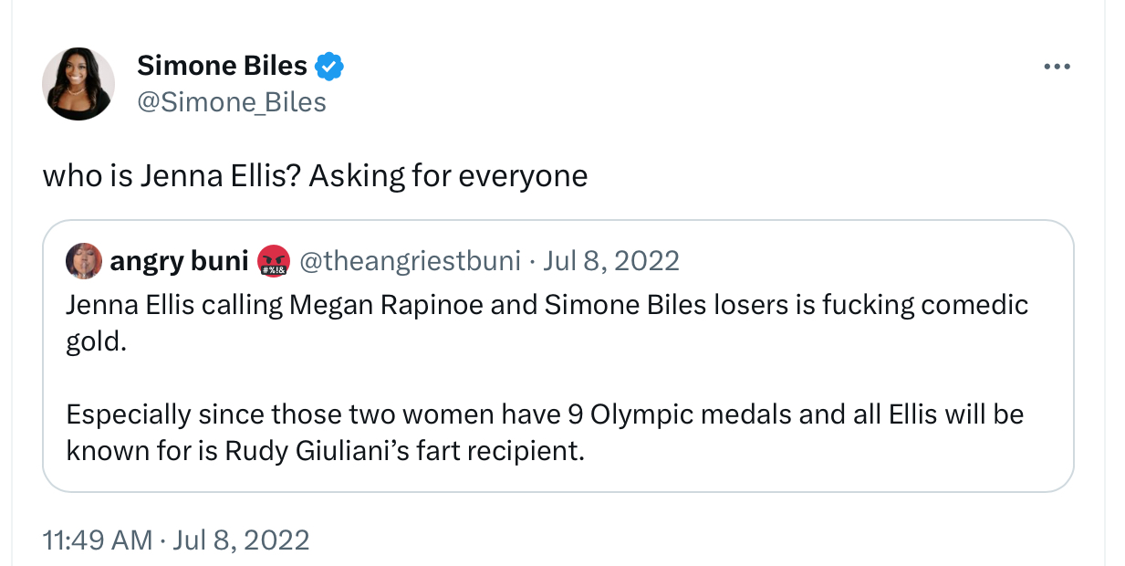 “A Black woman DA surrounded by a diverse staff in a plurality-Black county bringing down a rancid racist like Trump, whose Big Lie was drenched in racial grievance and stereotyping. Never forget Ruby Freeman.”