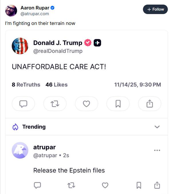It’s a problem because they say whatever they need to say in the moment to get by the current situation. So you have Trump saying he’ll release the Epstein files during the campaign to get elected. And, when he does, says at various points, there are files, there are no files, that it’s a Democratic hoax, etc.