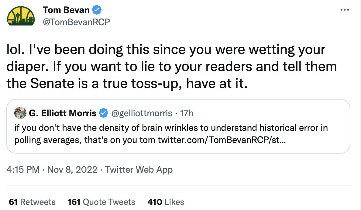 That in closing weeks, so many people parroted what the Nates were peddling, those R-skewed polls flooding the zone, and absurdities like New York, Colorado, Washington, and Oregon being “in play”.