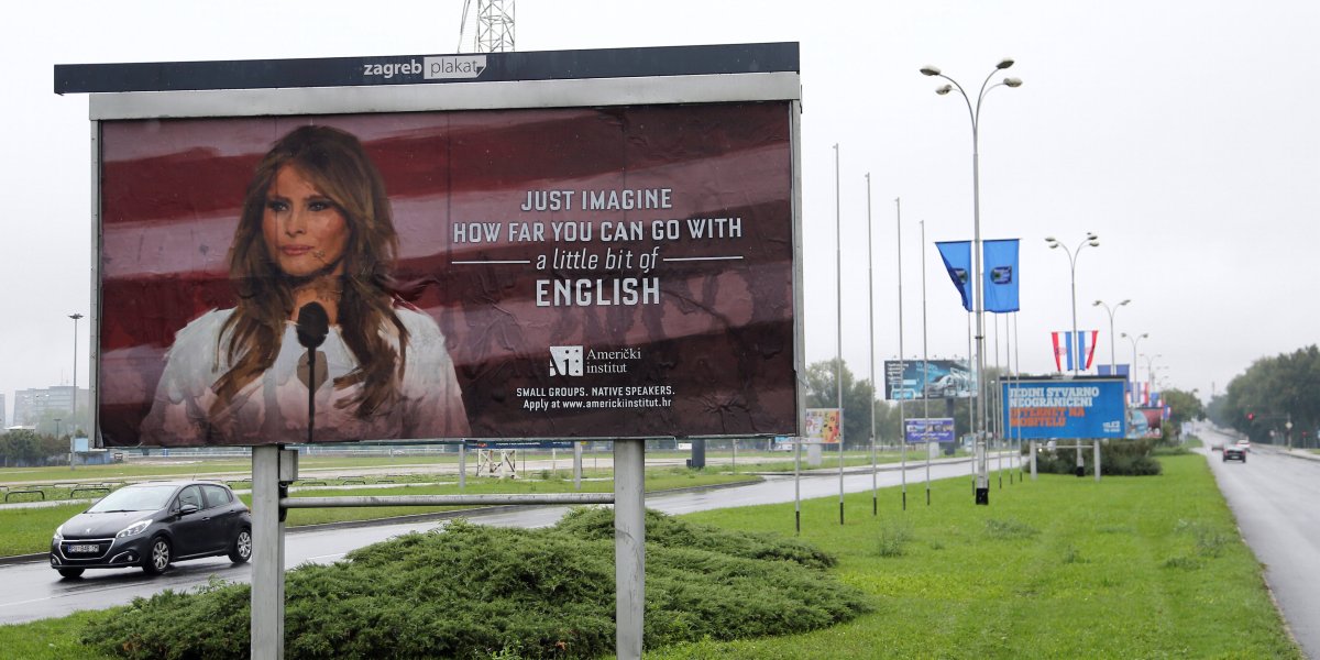 “Just imagine how far you can go with a little bit of English,” read billboards that appeared in the capital city of Zagreb last week. They display a photo of Trump delivering a speech at last year’s Republican National Convention.
