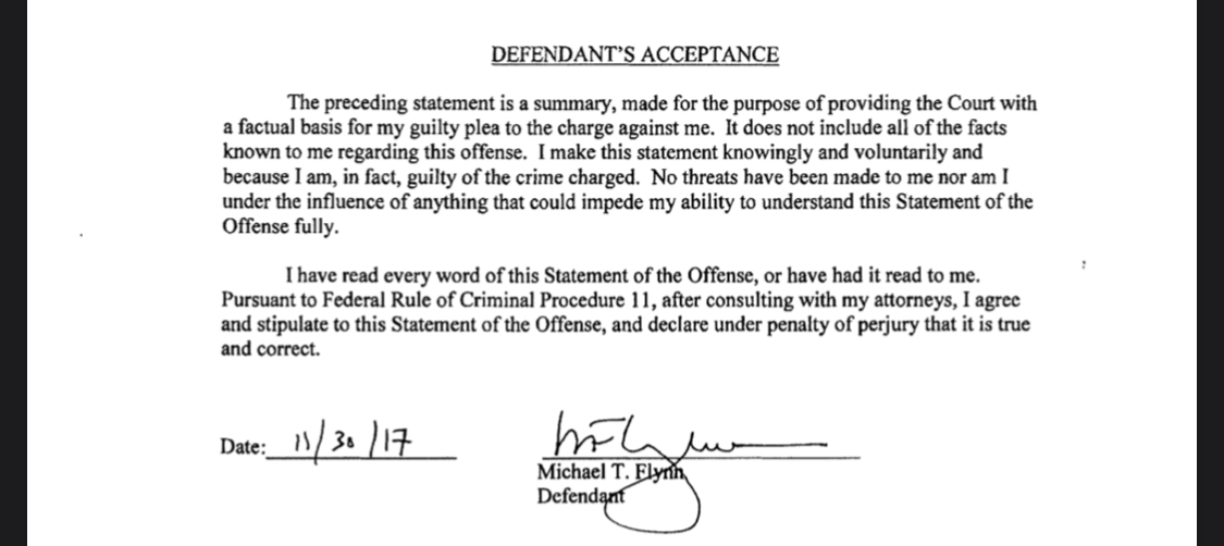 Shouldn’t publish this without the transcript from his guilty plea in which the judge makes him say over and over and over again that he’s really, truly guilty and that he really, truly doesn’t believe there was prosecutorial misconduct or a government conspiracy against him. Judge anticipated this nonsense and nipped it in the bud. Flynn practically begged to be allowed to plead guilty.