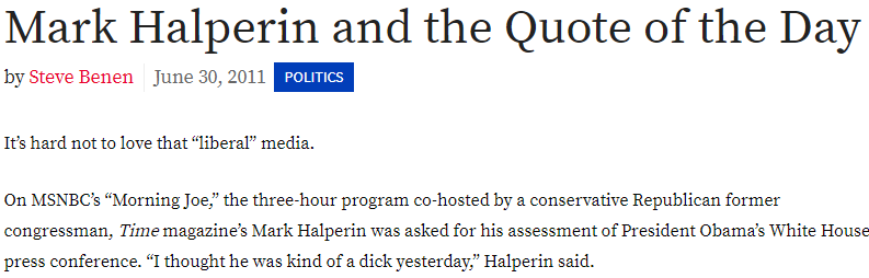 On top of everything else, Halperin promoted Trump in 2016. It was painful listening to him on various MSNBC shows.