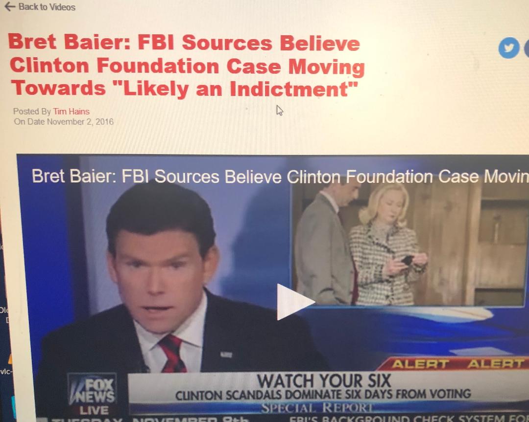 Lest we forget. Just days before the election in 2016 Brett Baer had inside information from the FBI that Clinton was just about to be arrested. And Trump went to town on it during his campaign rallies. We still don’t know who these FBI sources were.