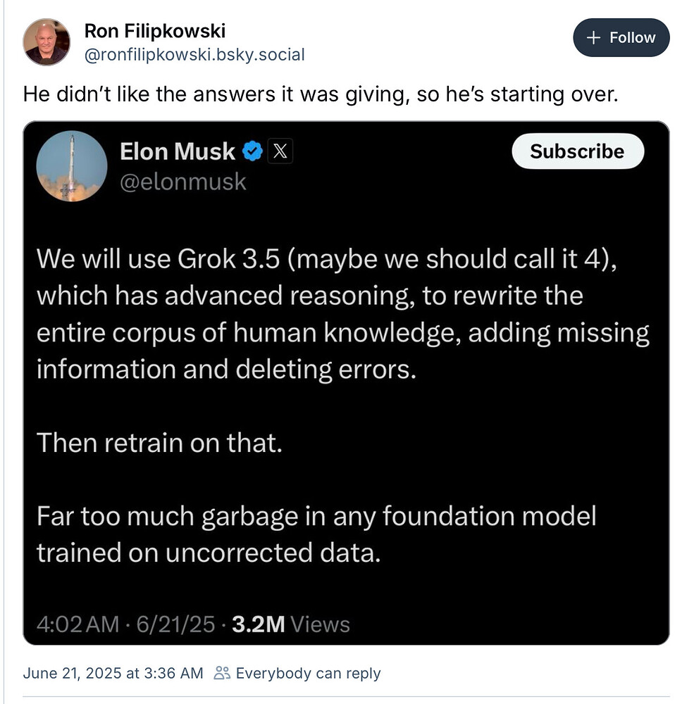 So he’s going to use an AI tool to create a database with which to train another AI tool?