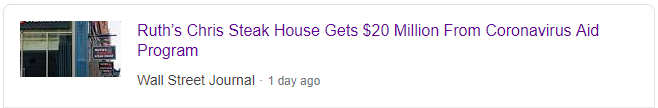 So how much of this money went to actual small businesses and how much to large businesses that have cleverly structured their operations to make it seem like they’re a bunch of small businesses, each with 500 or fewer full-time, permanent employees but with way more part-time and/or temporary employees and contractors? There’s about a zero chance that this hasn’t been gamed and that Mnuchin hasn’t allowed this to happen. ZERO.