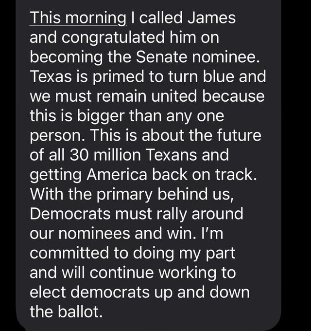 Jesus. How about John Cornyn? You know, literally the other guy in the race. While I’m no fan of Cornyn, he’s certainly not the corrupt PoS Paxton is. It just goes to prove, once again, that these self-proclaimed Bible thumpers can rationalize anything.