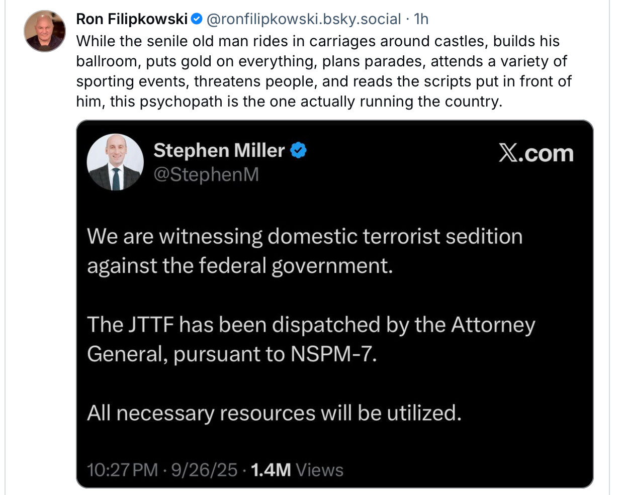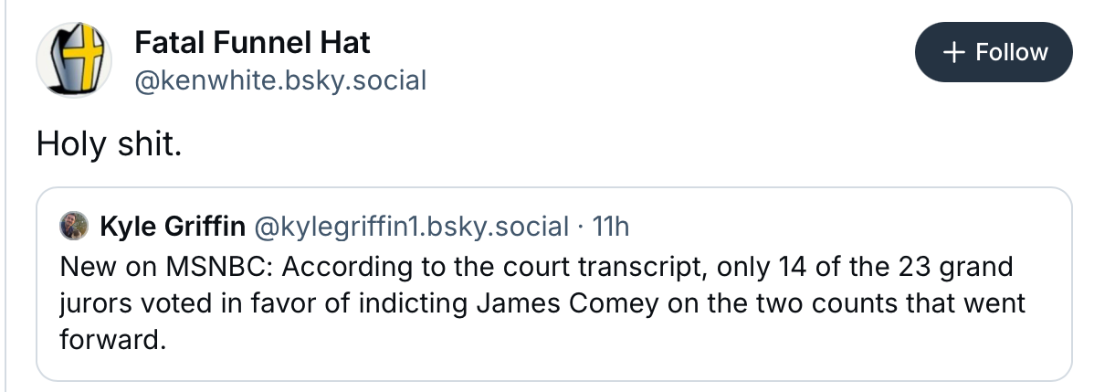 The Four Horsemen of the Apocalypse - TSF’s maladministration, the GOP/NAZI sycophant caucuses, the corrupt six and the billionaire owned media - could not ride without the cowardice, greed, venality and long term stupidity exhibited by previously (mostly politically quiet) businesses, law firms. educational institutions, … and now FFS … A List comedians supinely tending their stables, horses, weapons and gear.