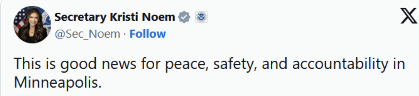 Noem and Bondi keep telling us that the ICE and CBP “agents” are performing miracles while acting within the boundaries of the law and in full accord with their training. Why would you even reinforce, much less replace, the leader of such a successful operation?