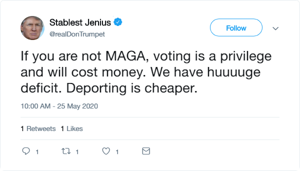 A lot of people are saying Jim Crow laws work well against Covid 19. And some good studies, too! It is SAD that activist judges are keeping Florida from protecting its citizens from excess democracy while stimulating the economy by collecting money from convicts!