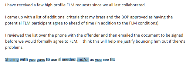 So, Cohen’s case gets assigned to a probation officer (Pakula) who says he’s never done a “Federal Location Monitoring” (FLM) program agreement (although he’s worked there since 2007). But he doesn’t seem to ask anyone in SDNY who has been involved with FLM program. But out of the blue, and apparently unsolicited, comes an email from a (unidentified – his name is redacted) “colleague” in the Eastern District of Pennsylvania who just happens to have come up with a special FLM agreement for “high profile FLM requests”