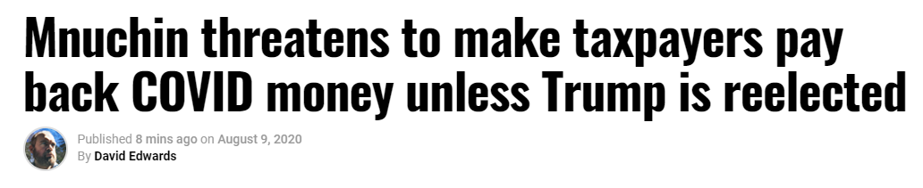 And we’ve covered the part about how states will be unable to cover 25% of the enhanced UE, but they too are fucking broke. WaPo or NYT needs to consult the reporters in state that cover their capitals and ask them how this is going to play out in state houses.