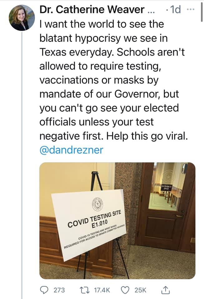 “As you probably know, I’ve made no secret about my thoughts on mask mandates in Congress…especially now that vaccines are available for free to everyone and the vast majority of our most vulnerable populations have been vaccinated.”
